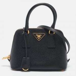 Prada Black Logo Print Saffiano Leather Frame Top Handle Bag