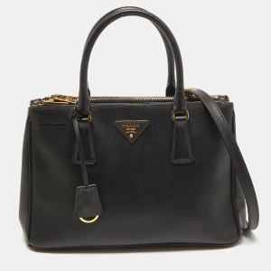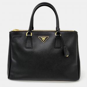 Prada Black Saffiano Lux Leather Small Galleria Double Zip Tote