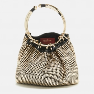 Valentino Gold Leather Large Rockstud Envelope Clutch