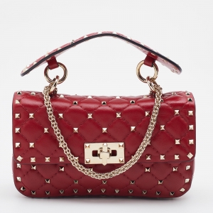 Valentino Red Leather Rockstud Flap Shoulder Bag