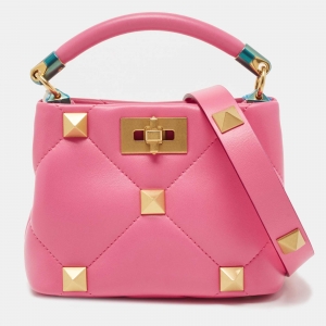 Valentino Green Quilted Leather Small Roman Stud Top Handle Bag