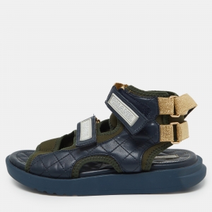 Chanel Navy Blue/Green Quilted Leather and Neoprene Gladiator Sandals Size 39