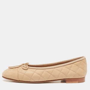 Chanel Beige Quilted Nubuck Leather CC Cap Toe Bow Ballet Flats Size 36