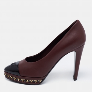 Chanel Black Leather Cap Toe Chain Platform Pumps Size 38