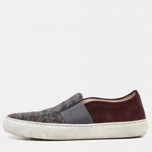 Chanel CC Size 40 Navy Blue Leather, Suede and Tweed Low Top Sneakers