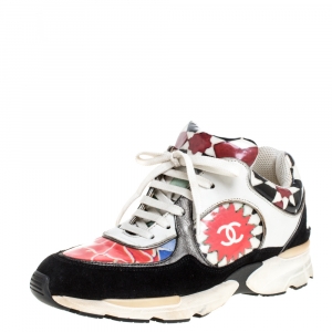 Chanel Black/Blue Leather, Suede And Velvet CC Low Top Sneakers Size 39