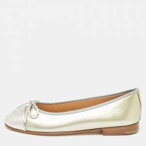 Chanel Yellow/Brown Cork and Leather Ballet Flats Size 39
