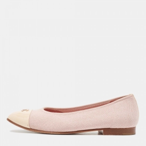 Chanel Black Leather and Patent CC Cap Toe Bow Ballet Flats Size 38