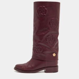 Chanel Black Calf Leather Knee Length Boots Size 38.5
