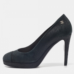 Chanel Black/Gold Suede Platform Pumps Size 38.5