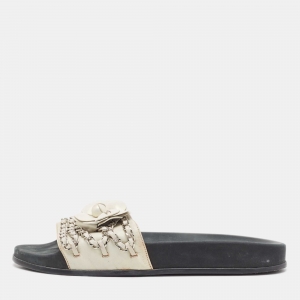 Chanel Interlocking CC Size 41 White Fabric Flat Slides