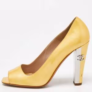 Chanel Yellow/Black Patent Cap Toe Pumps Size 39