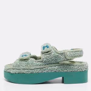 Chanel Mint Green/Beige Sequin and Canvas CC Cap Toe Espadrilles Size 39