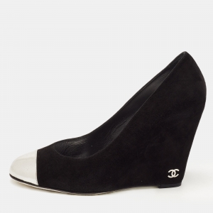 Chanel Black Suede Round Toe Platform Pumps Size 38