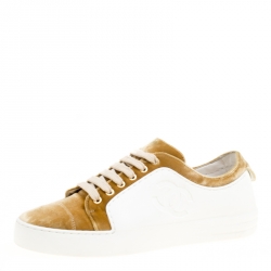 Chanel Gold/White Velvet and Rubber Metiers D’Art 2017 Paris Cosmopolite Collection Platform Sneakers Size 36