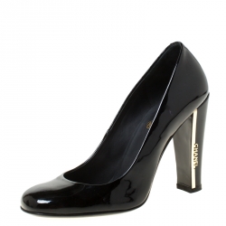 Chanel Black Patent Leather CC Pearl Embellished Heel Peep Toe Pumps Size 40.5