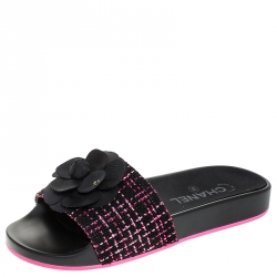 Chanel Two Tone Sequined CC Smoking Slippers Size 38.5