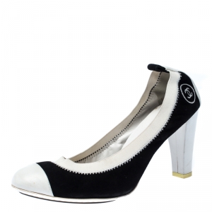 Chanel Black Leather CC Cap Toe Pumps Size 37