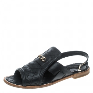 Chanel Black Quilted Leather Charm Embellished Flat Sandals Size 39