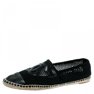 Chanel Black Leather and Mesh CC Espadrilles Size 38