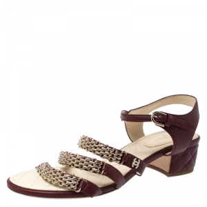 Chanel Black/White Fabric and Sequin Chain Embellished Cork Slide Sandals Size 38