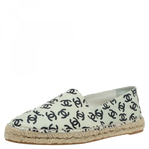 Chanel Cream Leather And Black CC Printed Espadrilles Size 42