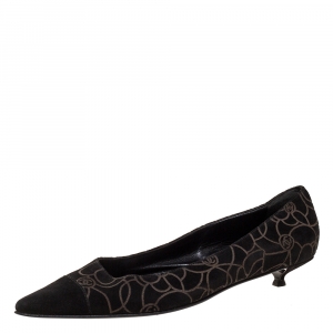 Chanel Black CC Embossed Suede Pointed Cap Toe Pumps Size 39