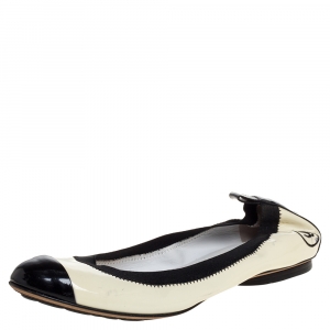 Chanel Monochrome Patent Leather CC Scrunch Ballet Flats Size 39