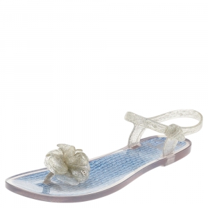 Chanel White Jelly CC Camellia Flat Sandals Size 41