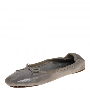 Chanel Grey/Black Glitter Suede And Leather CC Cap Toe Bow Ballet Flats Size 37