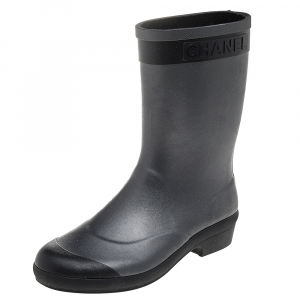 Chanel Grey/Black Leather CC Ankle Wrap Ankle Boots Size 39.5
