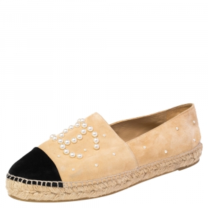 Chanel Beige CC Canvas Cap-Toe Flat Espadrille Size 39