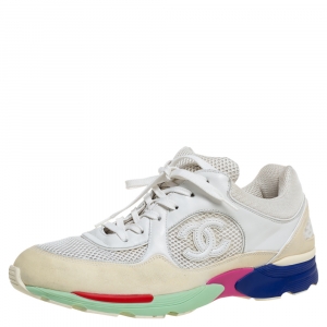 Chanel Multicolor Tweed And Leather CC Cap Toe Low Top Sneakers Size 36.5