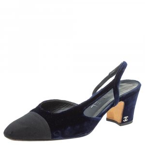 Chanel Blue/White Rubber and Velvet CC Trainer Low Top Sneakers Size 38.5