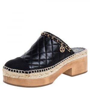 Chanel Black Leather Interlocking CC Mules Size 39.5