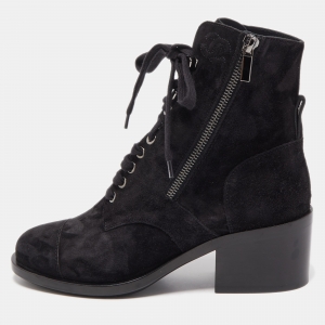 Chanel Black Suede And Fabric CC Lace Up Sneakers Size 40