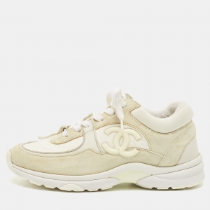 Chanel Beige Suede and Fabric CC High Top Sneakers Size 42