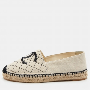 Chanel White/Black Embroidery Ankle Strap Espadrilles Size 37