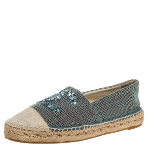 Chanel Black Printed Canvas CC Espadrille Flats Size 38