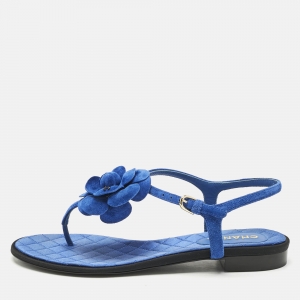 Chanel Black/Off White Leather and Suede Dad Flat Sandals Size 36