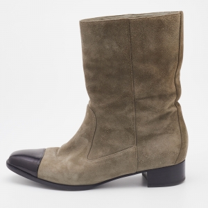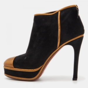Chanel Black Tweed and Nubuck Leather Ankle Boots Size 38