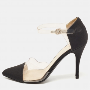 Chanel Black Fabric and Patent Leather Cap Toe CC Pumps Size 38