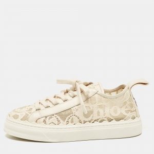 Chloe Beige/White Lace and Leather Lauren Slip On Sneakers Size 41