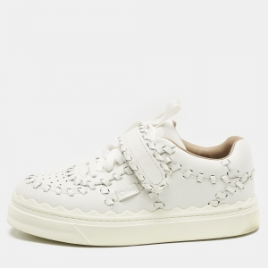 Chloe White Knit Fabric and Suede Nama Sneakers Size 39