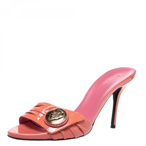 Gucci Coral Pleated Patent Leather Hysteria Slide Sandals Size 37