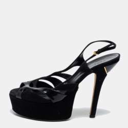 Gucci Black Patent Microguccissima Leather Penelope Espadrille Wedge Sandals Size 35.5