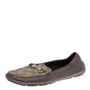 Gucci Beige/Brown GG Canvas and Leather Horsebit Platform Pumps Size 35.5