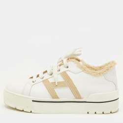 Hermes Dare Size 40 White/Beige Leather and Shearling Low Top Sneakers