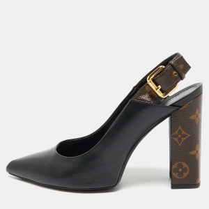 Louis Vuitton Dark Brown Leather Slingback Platform Sandals Size 38.5