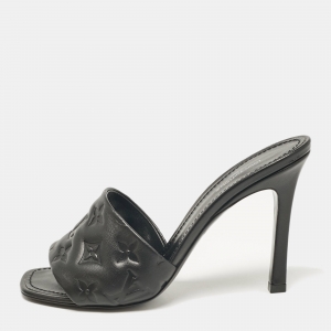 Louis Vuitton Black Leather Lock It Flat Slides Size 38